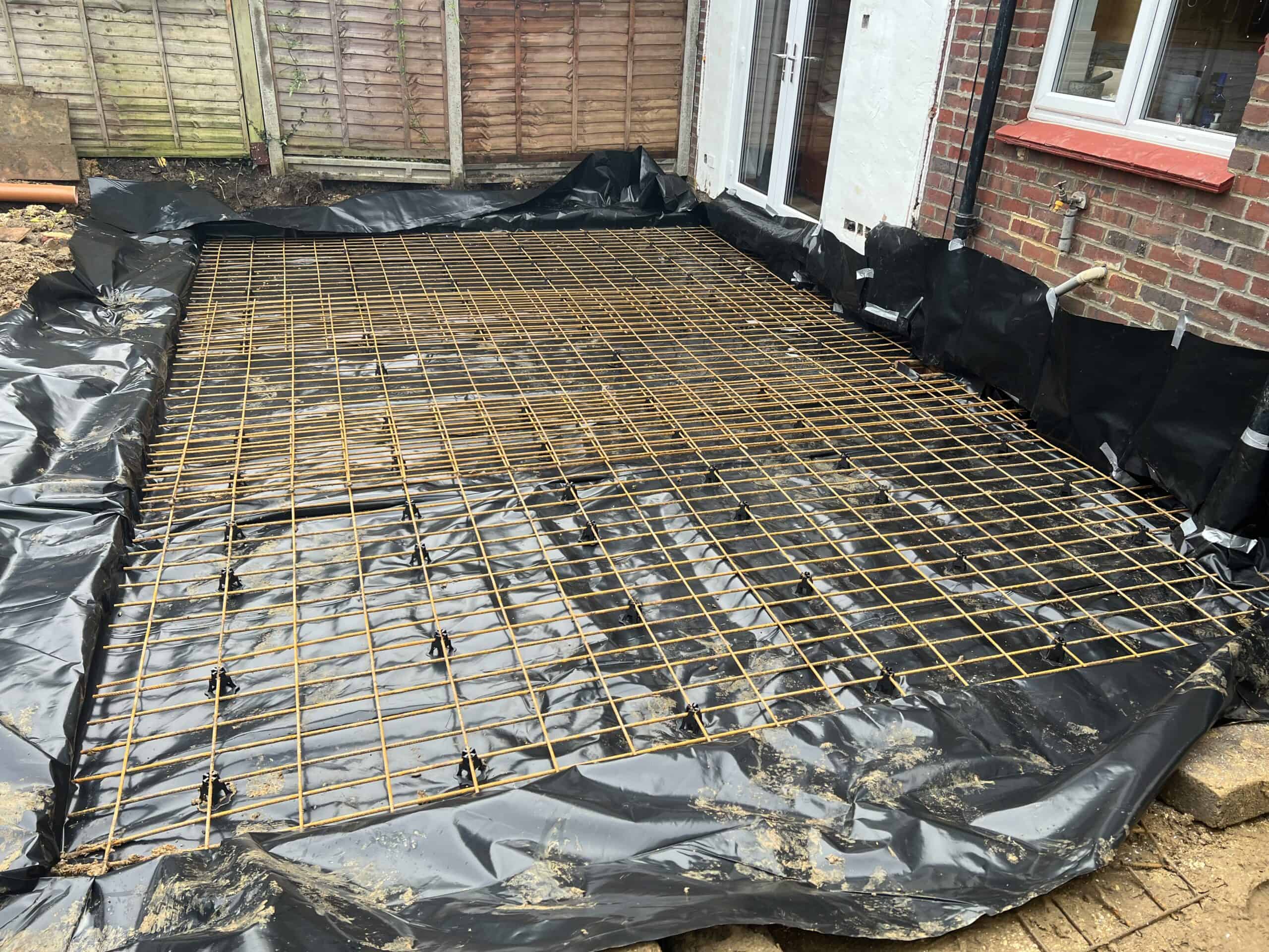Preparing the foundation with steel reinforcement for a new rear extension in Tongham, ensuring durability and stability.